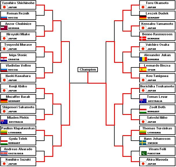 1. Norichika Tsukamoto JAPAN 2. Kunihiro Suzuki JAPAN 3. Kou Tanigawa JAPAN 4. Tsuyoshi Murase JAPAN 5. Akira Masuda JAPAN 6. Hiroyuki Miake JAPAN 7. Toru Okamoto JAPAN 8. Kouji Abiko JAPAN